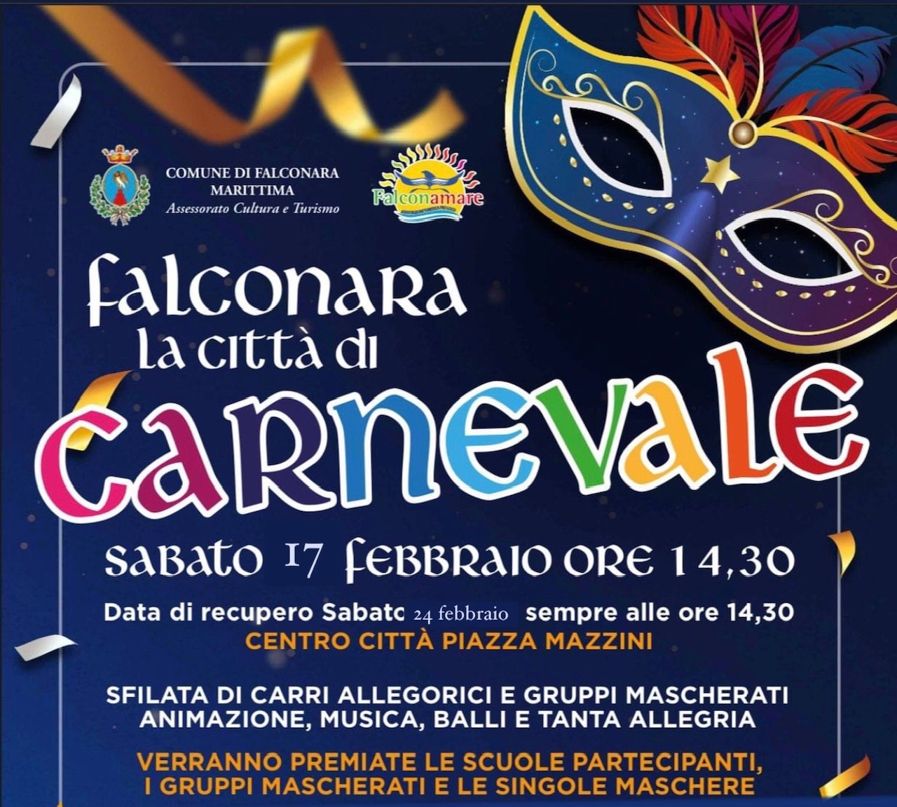Falconara Città di Carnevale Sabato 17 febbraio ore 14.30 (in caso di maltempo sabato 24 febbraio ore 14.30) Sfilata di carri allegorici e gruppi mascherati