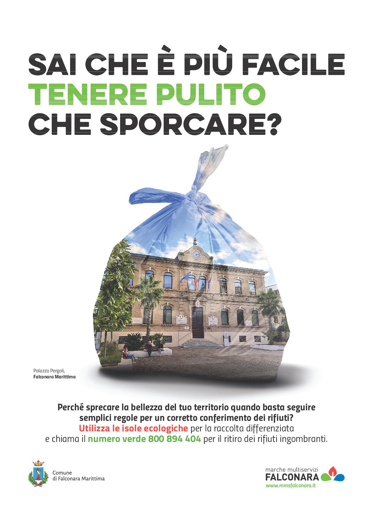 “Sai che è più facile tenere pulito che sporcare?” E' questo lo slogan della campagna informativa promossa da Marche Multiservizi Falconara in collaborazione con l’Amministrazione Comunale per porre un freno agli episodi di abbandono dei rifiuti che si verificano sul territorio, creando situazioni di degrado.