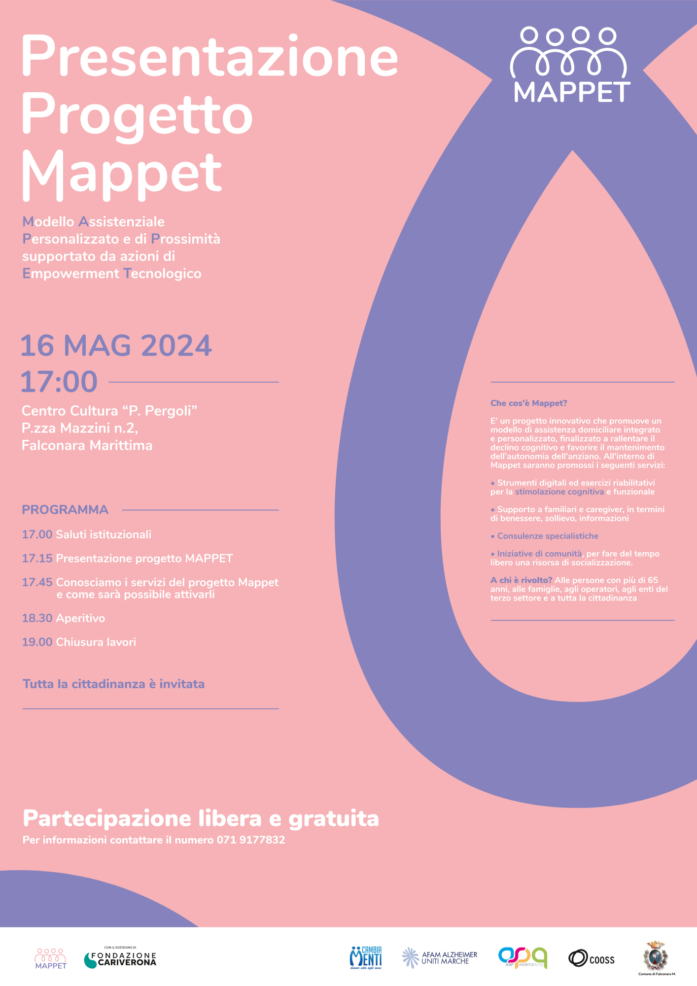 Il Progetto "Mappet", propone un modello di assistenza domiciliare integrato e personalizzato, finalizzato a rallentare il declino cognitivo dell’anziano e favorire il mantenimento della sua autonomia, offrendo una serie di servizi quali:
